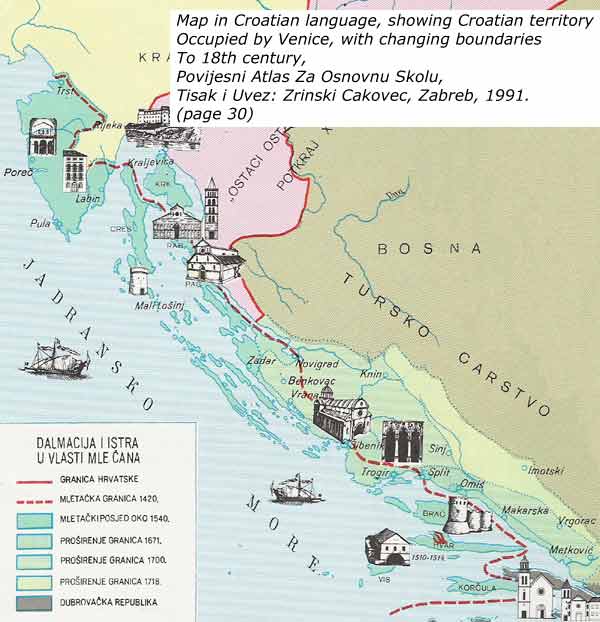 Map 10 ) 2003 road map & new Zagreb-Split highway & tunnel, Zadar & Lika Mozaik Knjiga d.o.o., Zagreb 2003 Map 12 ) Map showing Croatian territory occupied by Venice from 16th to 18th century, (shows changing boundaries) A Concise Atlas of the Republic of Croatia, M. Krleza Lexicographical Inst., Zagreb, 1993.(page 95) Map 13 ) Map in Croatian language, showing Croatian territory Occupied by Venice, with changing boundaries To 18th century, Povijesni Atlas Za Osnovnu Skolu, Tisak i Uvez: Zrinski Cakovec, Zabreb, 1991.(page 30)